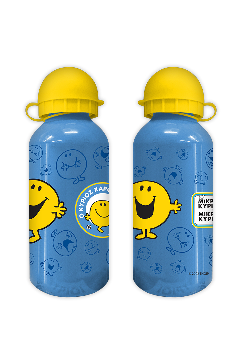 Παγούρι αλουμινίου Ο Κύριος Χαρούμενος 400ml με καπάκι ασφαλείας. Από οικολογικό υλικό, ανθεκτικό με αεροστεγές κλείσιμο. BPA FREE